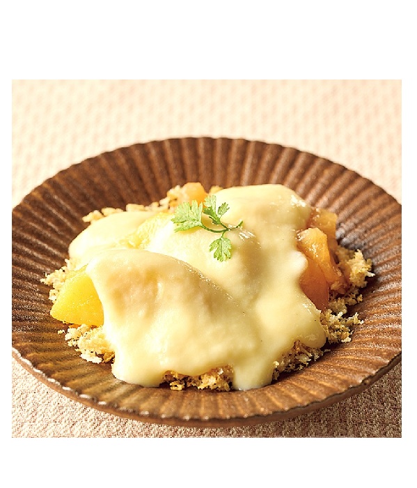 焼き上げたパン粉の上に、さつま芋とリンゴ、カスタードクリームを重ね、パイ風に仕上げました。
